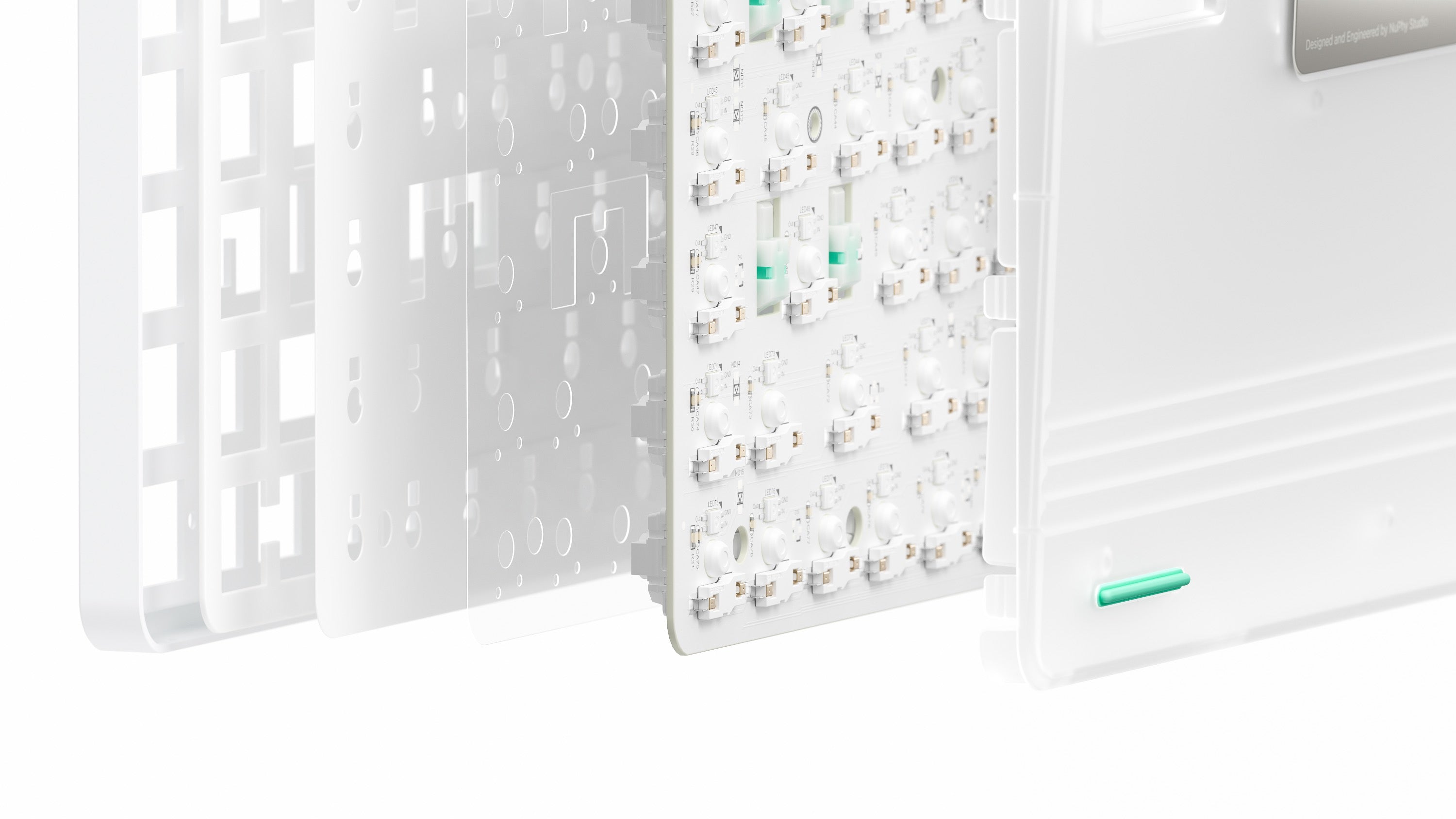 キーボード全体の音響性能にとって重要視されつつある構造音設計を採用。しかし、Air96を除けば、ロープロファイルキーボードではほとんど活用されていません。新しいAir60は、Air96で成功を収めたプレートPoronの空洞音吸収とIXPE PCBの音響純化技術を継承し、よりコンパクトなフォームファクターに最適化。その結果、スイッチの音の密度と純度が向上しました。さらに、スペースバーの音が他のキーと調和するよう、GhostBarから派生したシリコン音響調整技術を採用しています。