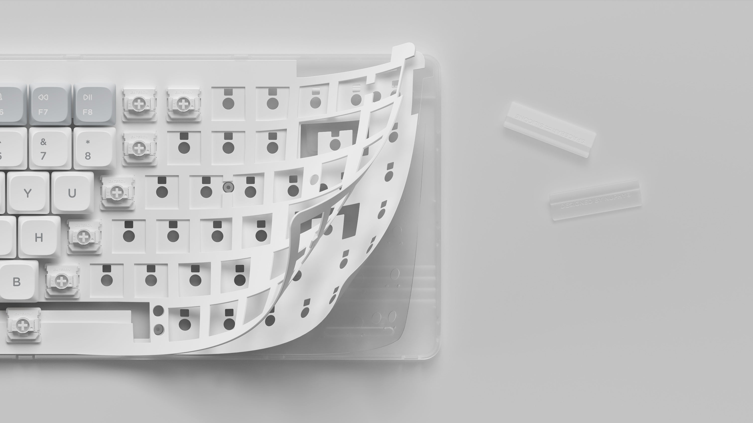 「Less is more」の美学に基づき、我々はシンプルなデザインを追求し続けてきました。Air75の上部フレームは従来のミニマルな外観を維持してしたまま、下部ケースは変更を加えられています。改良されたレーザーテクスチャリングプロセスのおかげで、底部ケースはより透明でより細かいテクスチャーが施され、Air75 の内部がはっきりと見えるようになり、全体がより美しくなりました。。