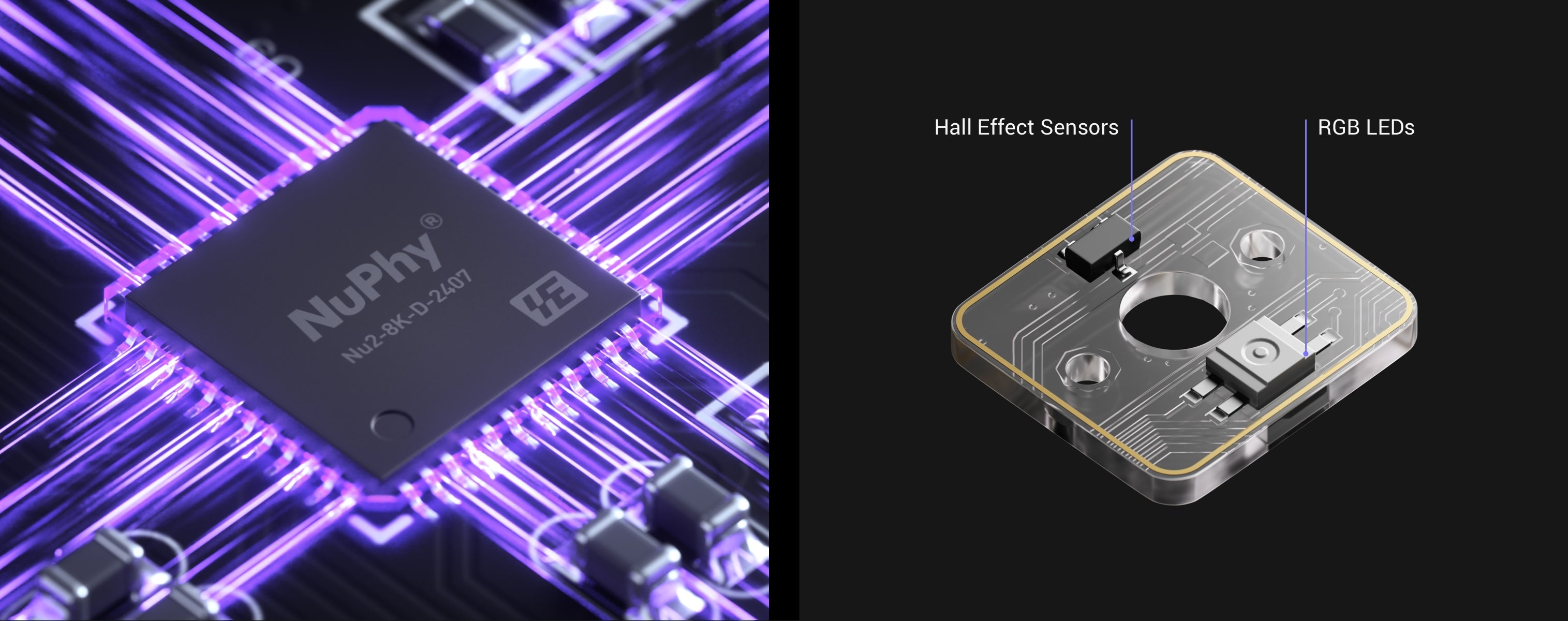 速度と RGB の妥協は無し 。低レイテンシへの競争は、ホール効果センサーに横方向電圧が蓄積されたときに始まります。ホール効果センサーは個別にパッケージ化され、LEDから電力を供給されるため、RGB効果が最大になっても感度が維持されます。信号経路の最後にも同様の配置が取られ、MCUがフルスロットルで信号の到着を処理し、業界をリードする精度と速度で信号を選択する独自開発のフィルタリングアルゴリズムが使用されております。