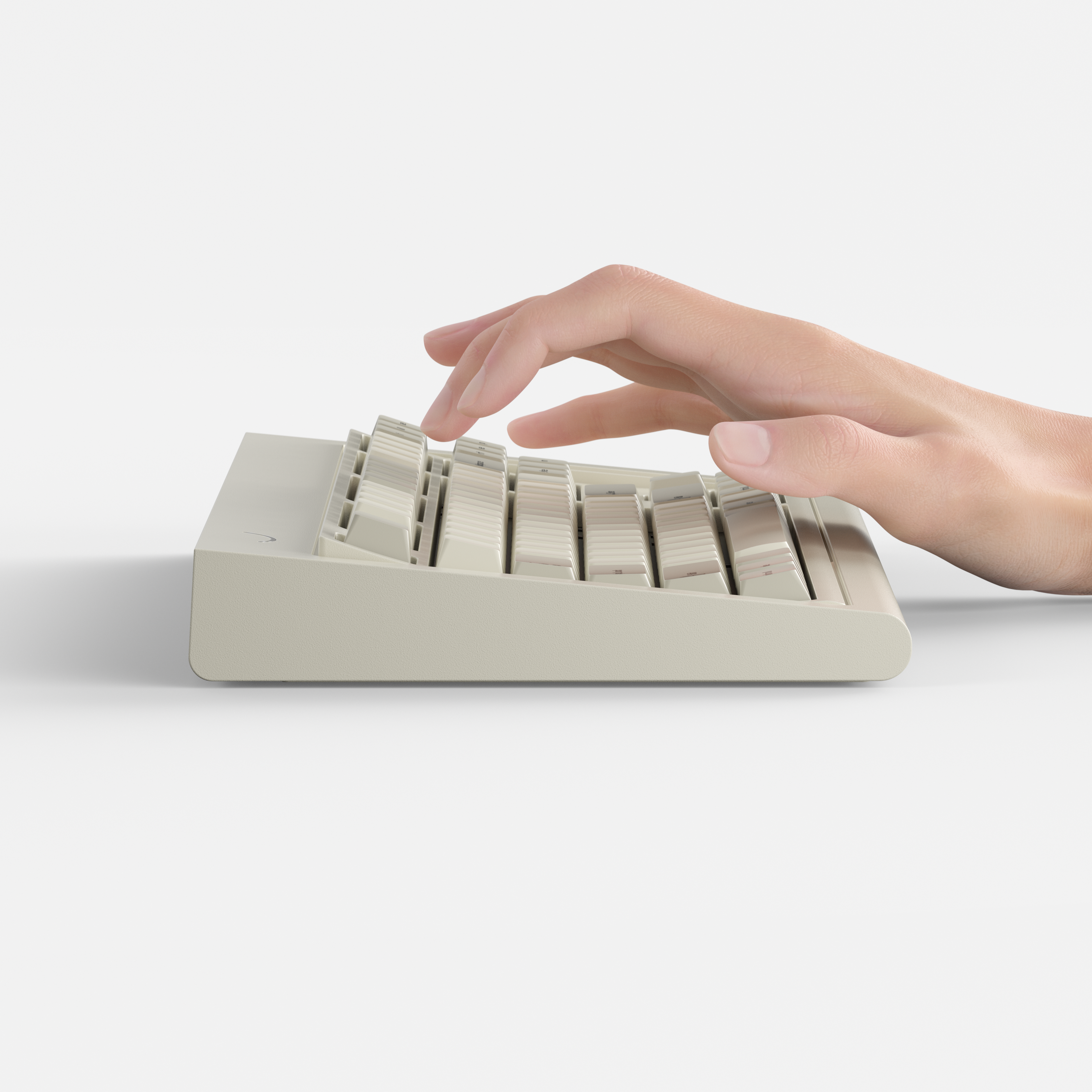 象徴的なIBM Model Mキーボードからインスピレーションを受けつつも、単なるレプリカではなく、クラシックなカーブデザインを現代のメカニカルキーボードへと昇華させた、現代的な再解釈モデルです。