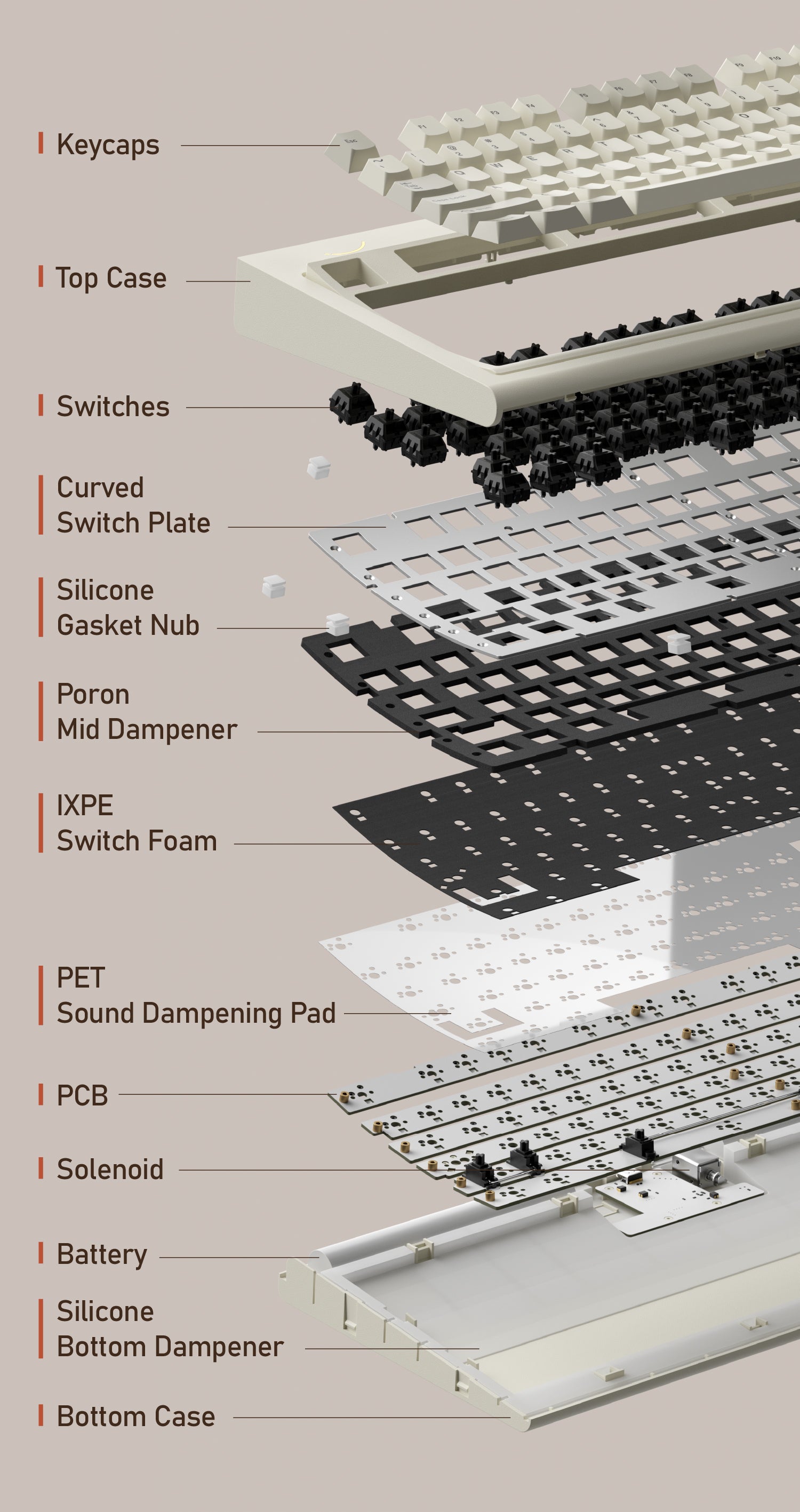 Smurve80は、タイプライターのような打鍵音を生み出すソレノイドモジュールを内蔵しています。レトロな個性と触覚フィードバックを付加し、キーを一打ちするごとにリズムと存在感のあるタイピング体験をもたらします。
