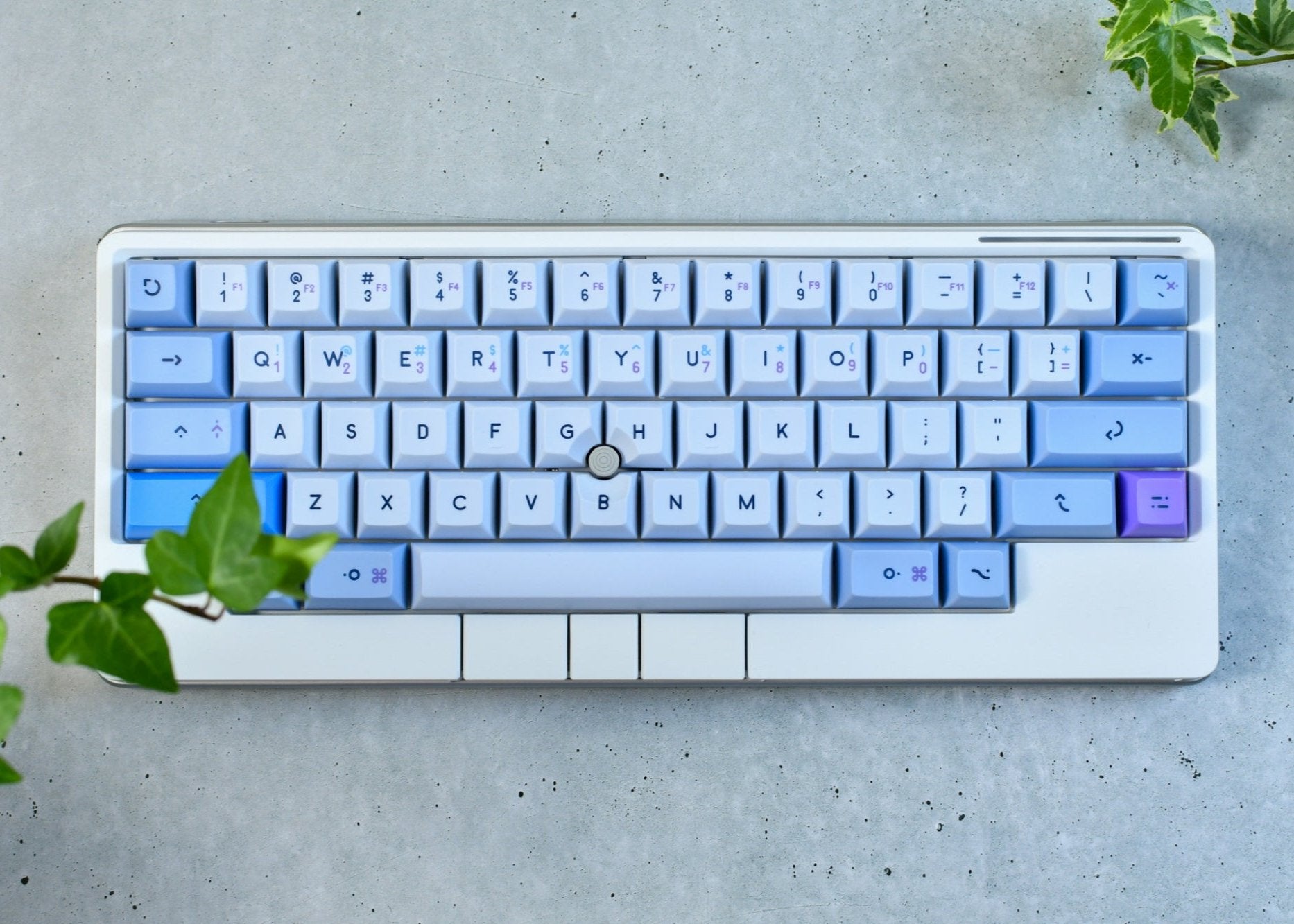KAT Operatorは機能的な工業デザインからインスピレーションを得て、ミルクシェイクのフォントスタイルを使用しています。メインカラーのヴィンテージグレーは洗練されたレトロな雰囲気を醸し出します。ニュートラルな色調をアクセントカラーとして使用し、上段、追加レイヤー、機能エリアを区別することでさりげなくも際立った個性を生み出します。