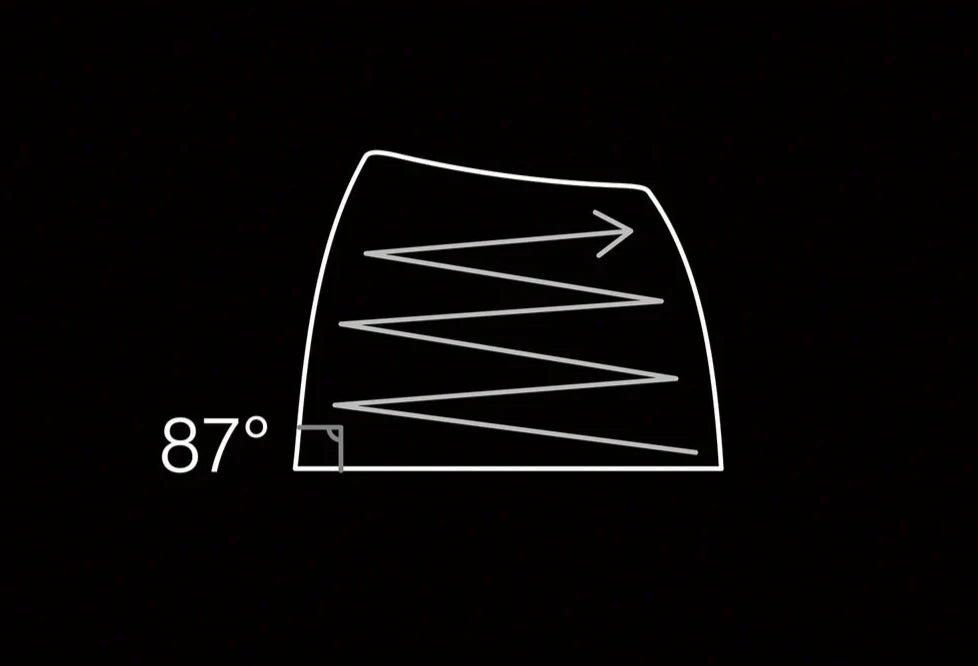 独特なタッピングサウンドを生み出す87°のサイドウォール