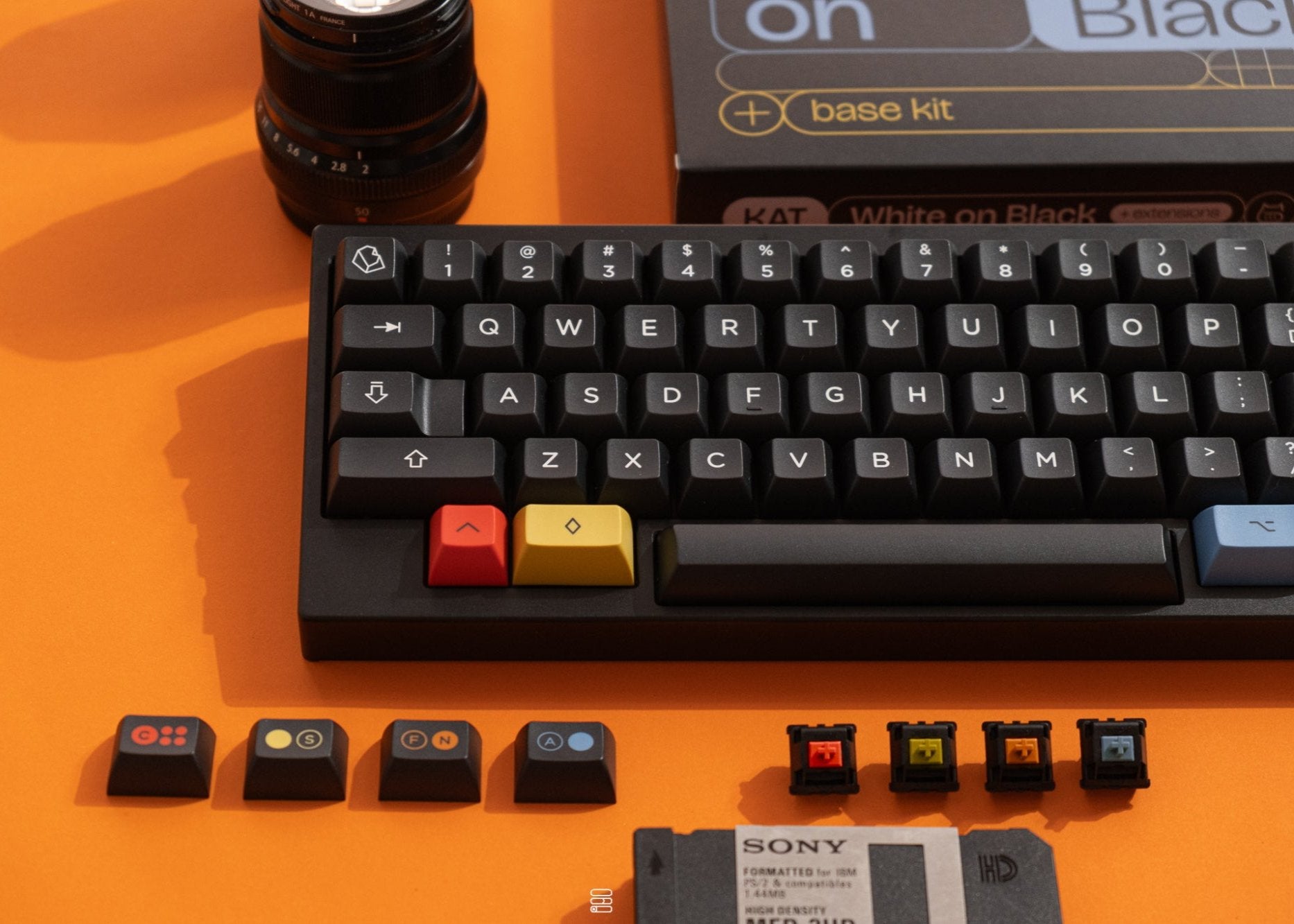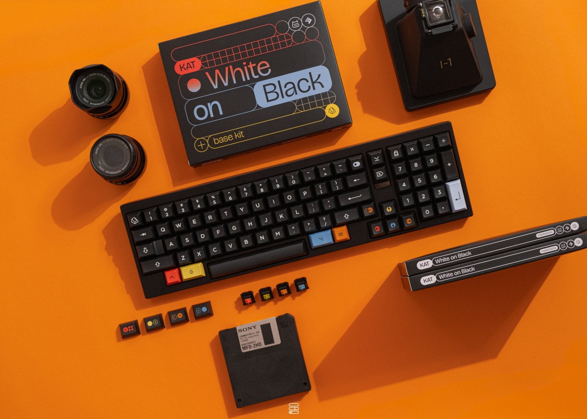 KAT WOB + Extensionsのデザインはシンプルさと遊び心の完璧なバランスを実現しています。レトロなシンセサイザーのイコノグラフィーからインスピレーションを受けたこのキーキャップは、どんなキーボードにも合わせられるクラシックな黒地に白のスタイルと個性的でユニークなカラフルなスタイルを切り替えることができます。どちらのスタイルにおいても、エレガントな美しさが際立ちます。