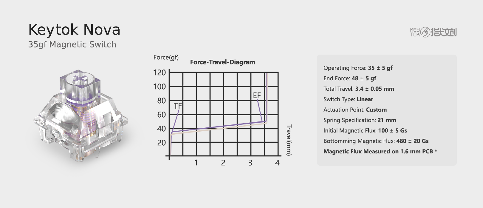 総トラベル:3.4±0.05mm押下圧