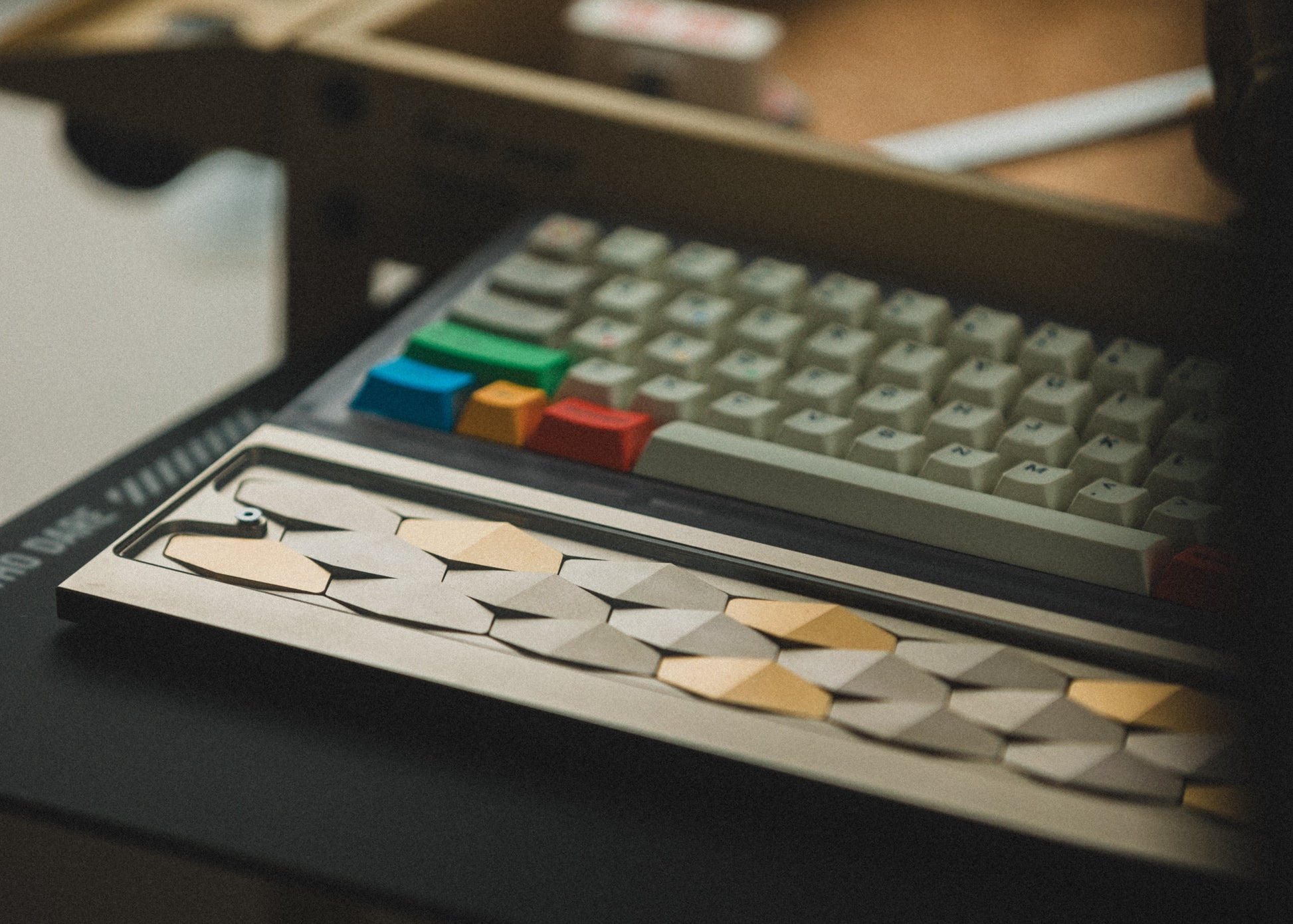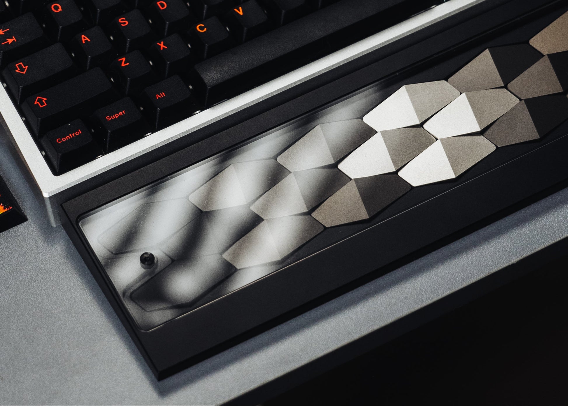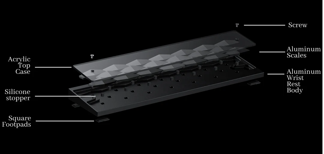 中国の伝統的な「竜」のイメージから着想を得て、精巧なCNC加工によって生み出された「竜鱗(Dragon Scale)」プレートが美しい色彩を織りなす、LeleLab × Lynn Studio Dragon Scale 65% リストレスト。