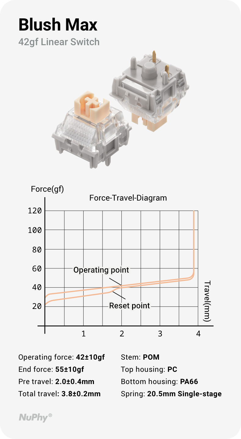 ノーマルプロファイルのスイッチは、よりしっかりとした満足感のある打鍵感を提供します。