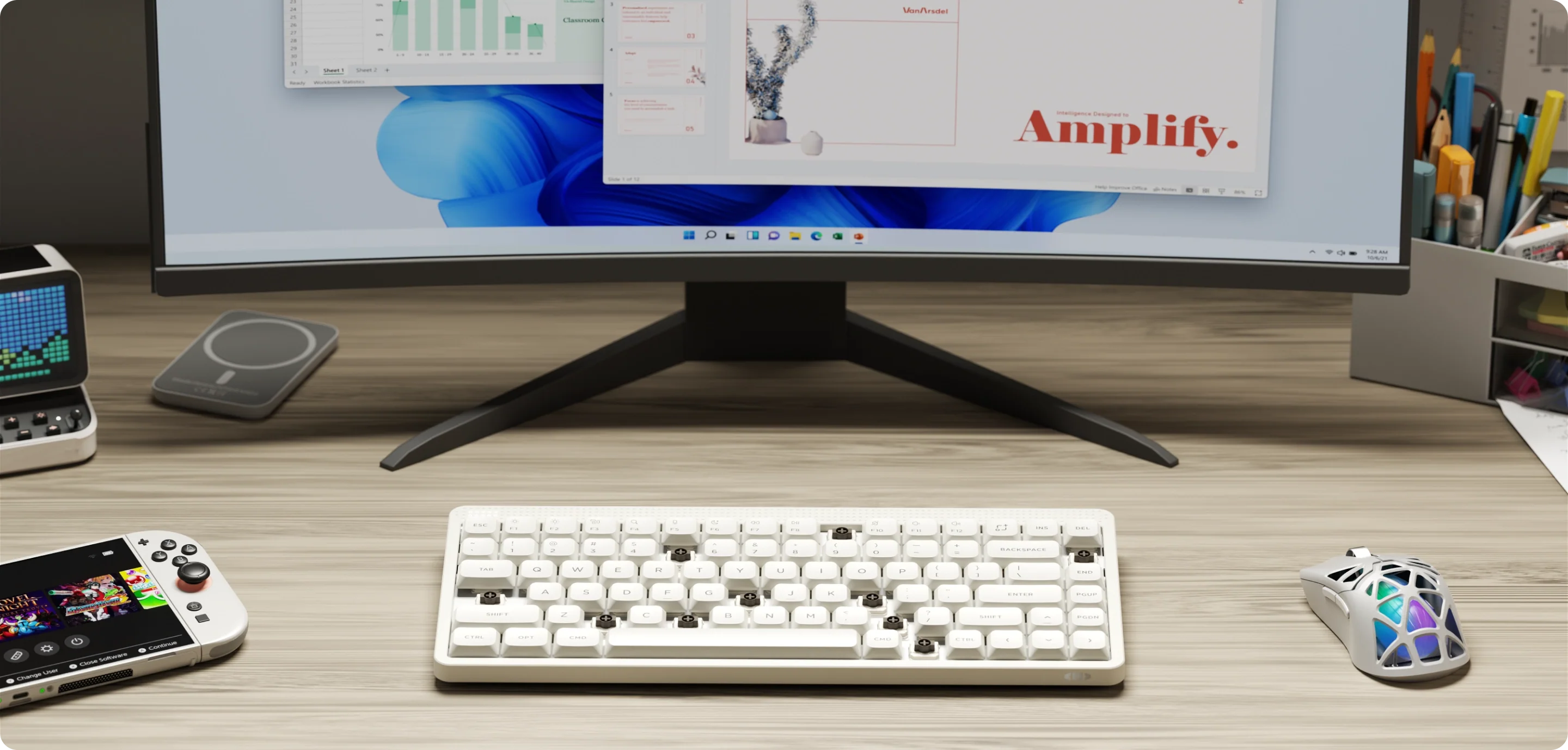 複数の作業をしながら、最大4台のデバイスを快適に切り替えられます。