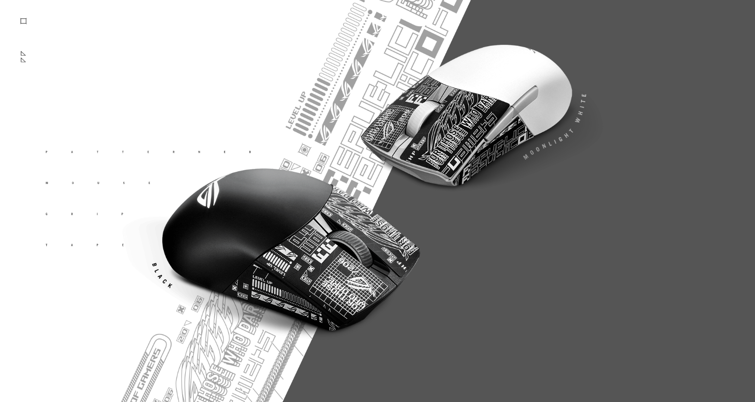 カット済みのROGデザインのグリップテープが付属されているため、貼るだけでグリップ力と操作性が向上し、外観のアクセントとしても楽しめます。
