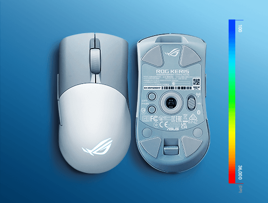 軽量設計のROG Keris Wireless AimPoint ゲーミングマウスは、激しいバトルの最中でも素早く動かすことができます。また、最適化されたバッテリー寿命により、何日間も戦い続けることができます。