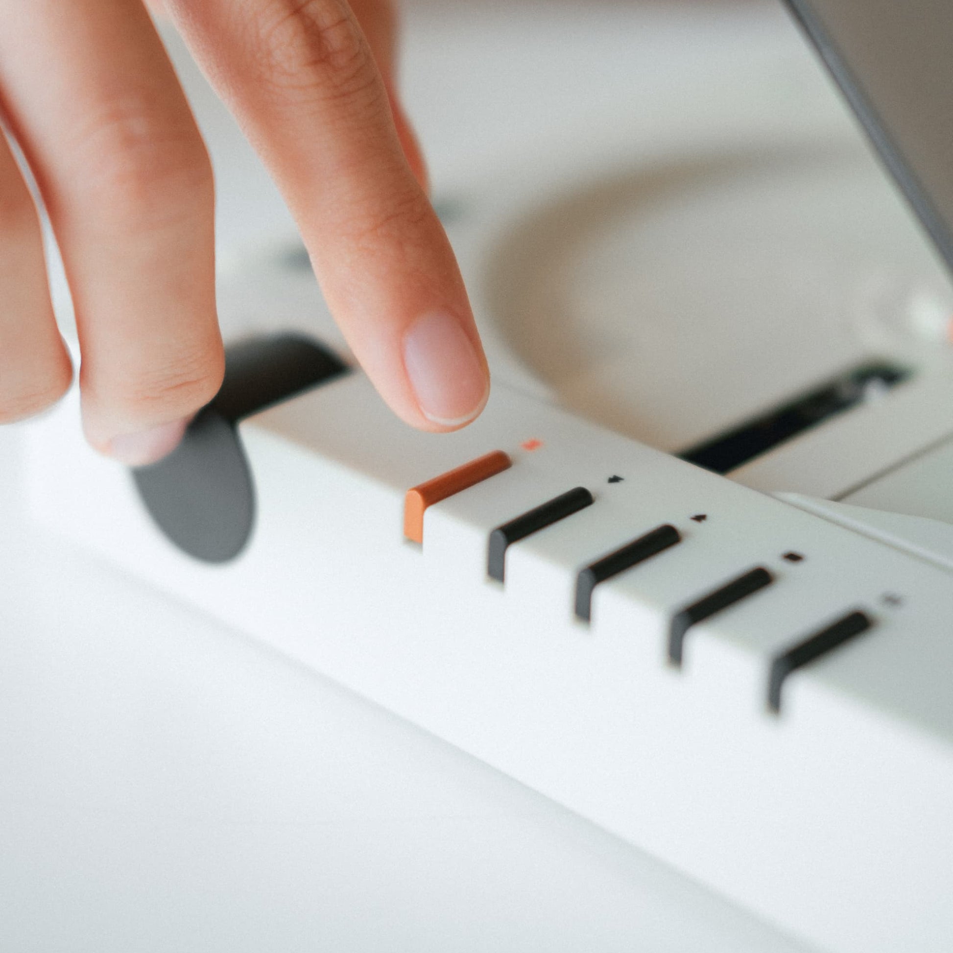 右側のボタン操作エリアは直感的に使えるレイアウトを採用。ラッカー仕上げの素材を使用し、上質で心地よい触感を提供します。